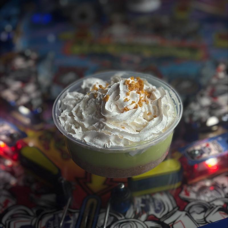 Key lime custard, graham crackers and whipped cream.
